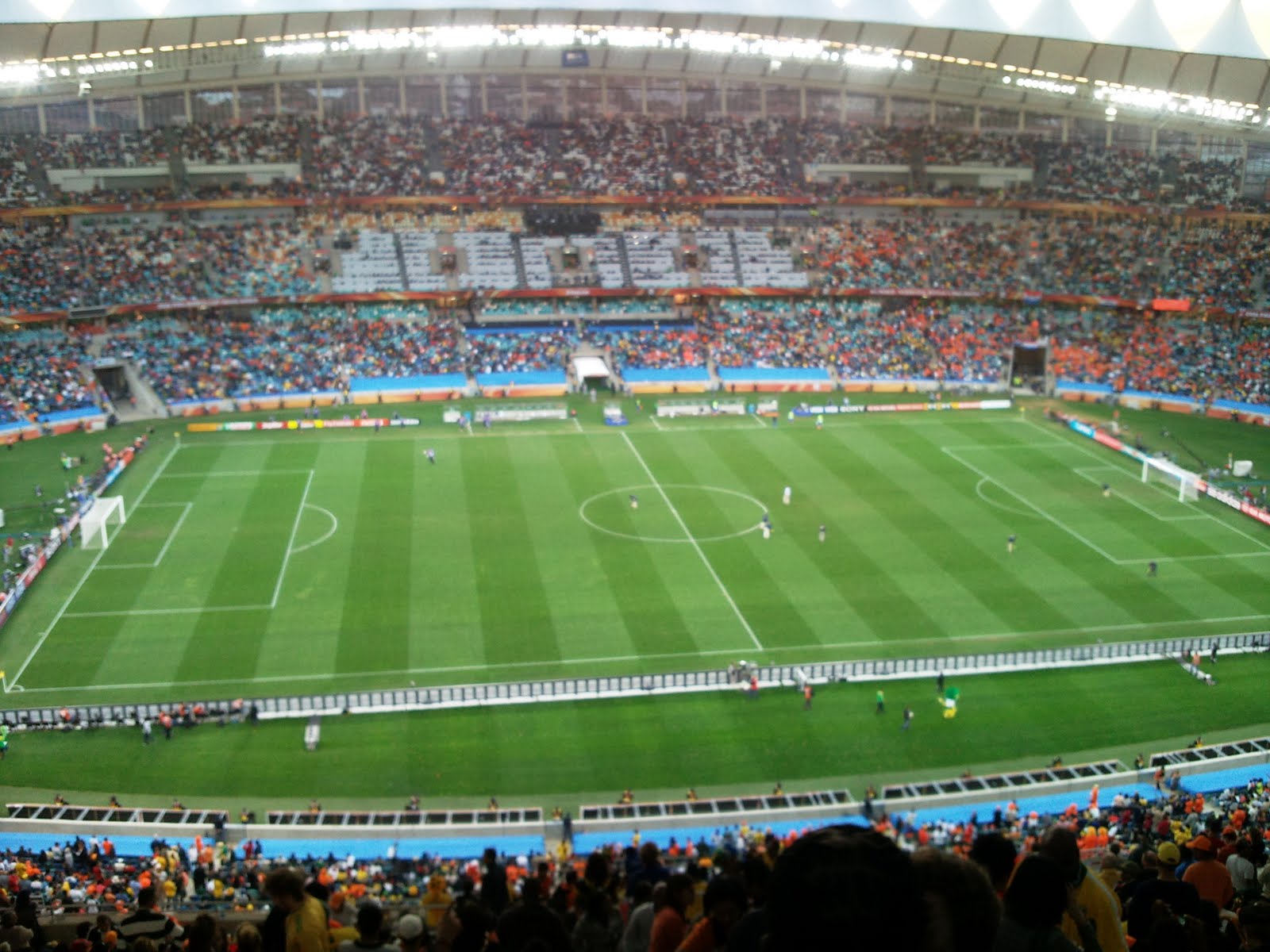We were early so, of course, people had only just started filtering in... First a few puffed out, happy faces peppered around the stadium, then a few more, and before we knew it, it was time to pop the earplugs in because of the deafening Vuvuzelas going mad around us.